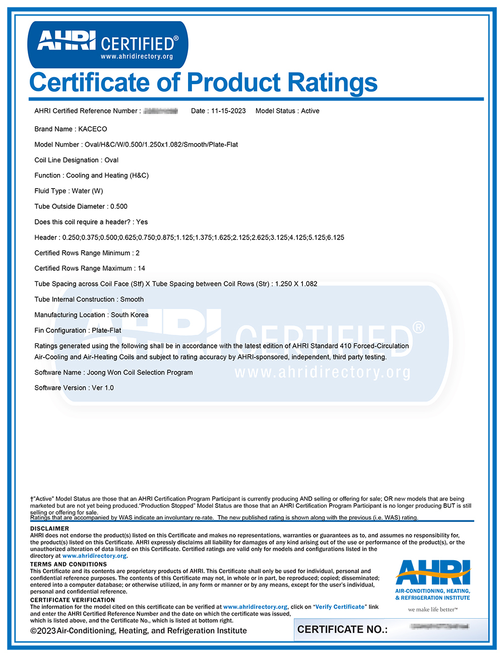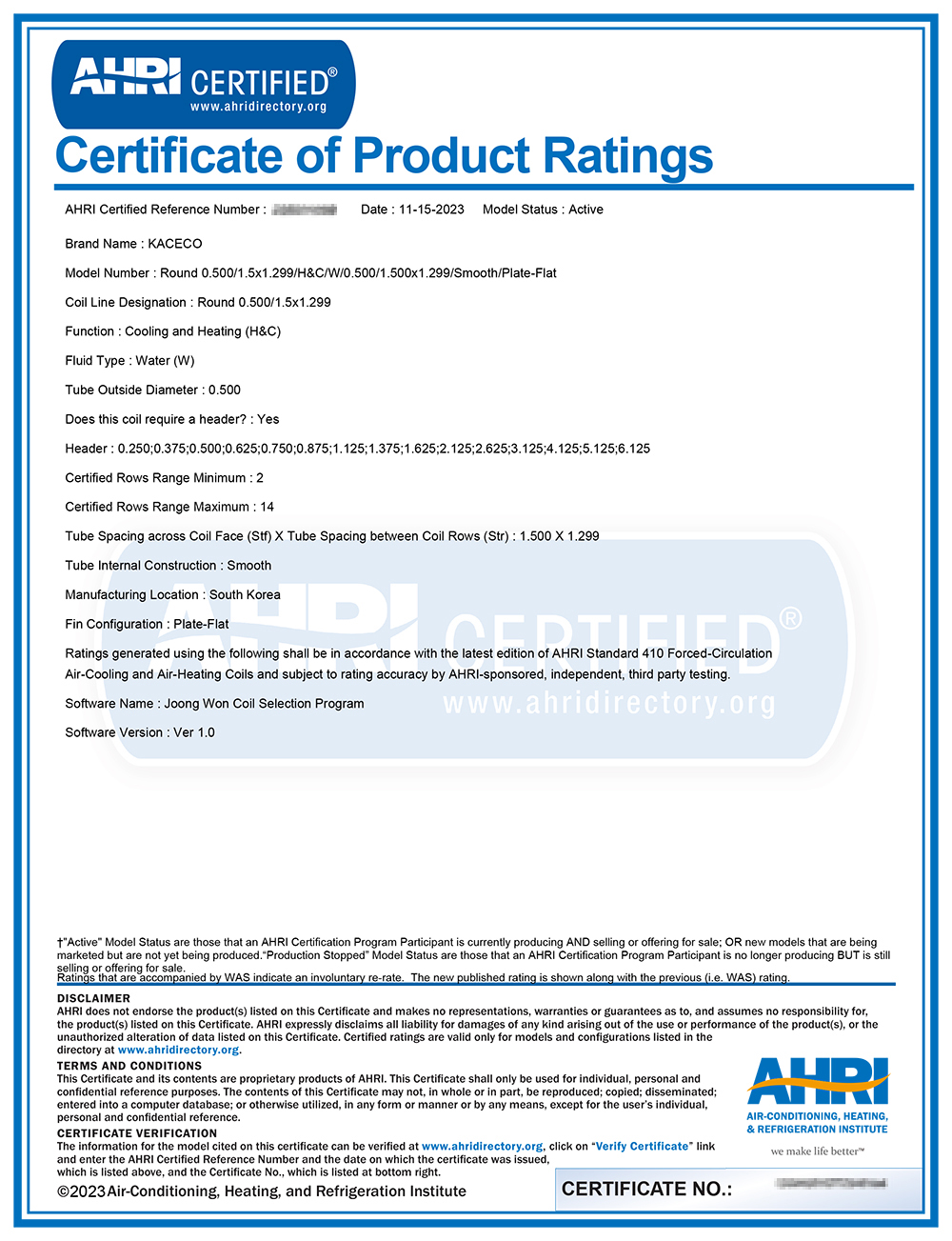 [µî·ÏÁõ&È®Àμ] 20 AHRI ÀÎÁõ¼(Circulation Heating and Cooling Coils)
