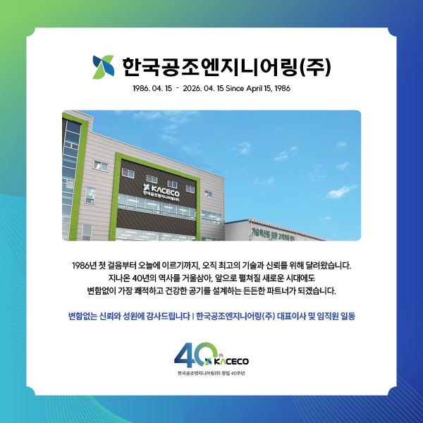 "Áö³ª¿Â 40³âÀÇ ½Å·Ú¸¦ ¹ÙÅÁÀ¸·Î, ´õ ¸¼°í ÄèÀûÇÑ ³»ÀÏÀ» ¼³°èÇϰڽÀ´Ï´Ù." ¾ÕÀ¸·Îµµ Çѱ¹°øÁ¶¿£Áö´Ï¾î¸µ(ÁÖ) KACECOÀÇ ÈûÂù Çຸ¿¡ ¸¹Àº ÀÀ¿ø°ú °Ý·Á ºÎʵ右´Ï´Ù. °¨»çÇÕ´Ï´Ù!