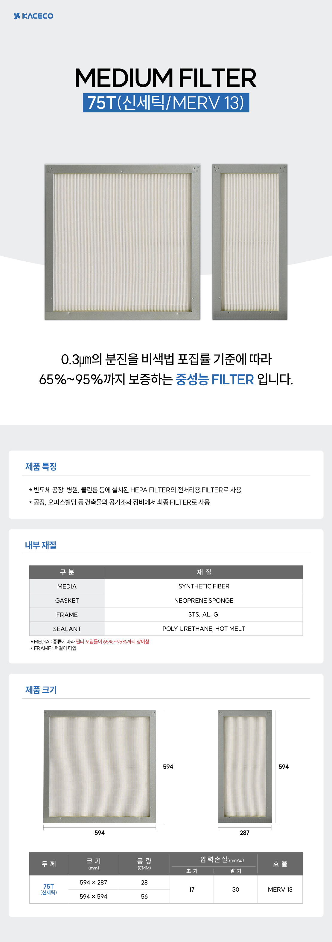 MEDIUM FILTER - 75T(½Å¼¼Æ½/MERV 13)